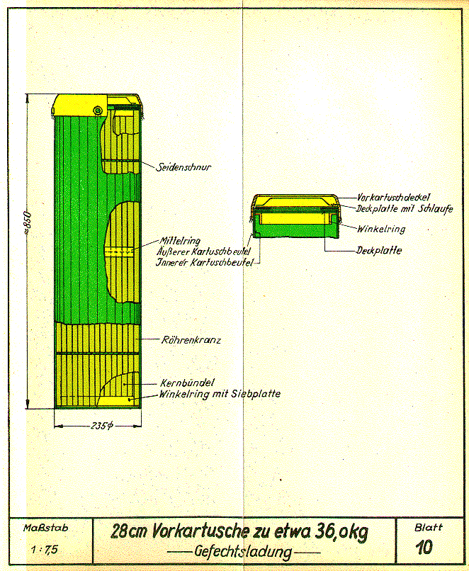 Blatt 9: 28 cm Vorkartusche zu etwa 33,6 kg mit Zuladeröhren - Gefechtsladung -Blatt 11: 28 cm Vorkartusche zu etwa 31,6 kg - Gefechtsladung -Inhaltsverzeichnis