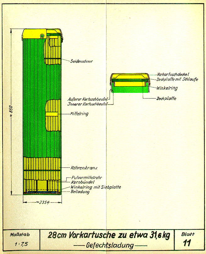 Blatt 10: 28 cm Vorkartusche zu etwa 36,0 kg - Gefechtsladung -Blatt 12: 28 cm Vorkartusche 28 - Gefechtsladung -Inhaltsverzeichnis