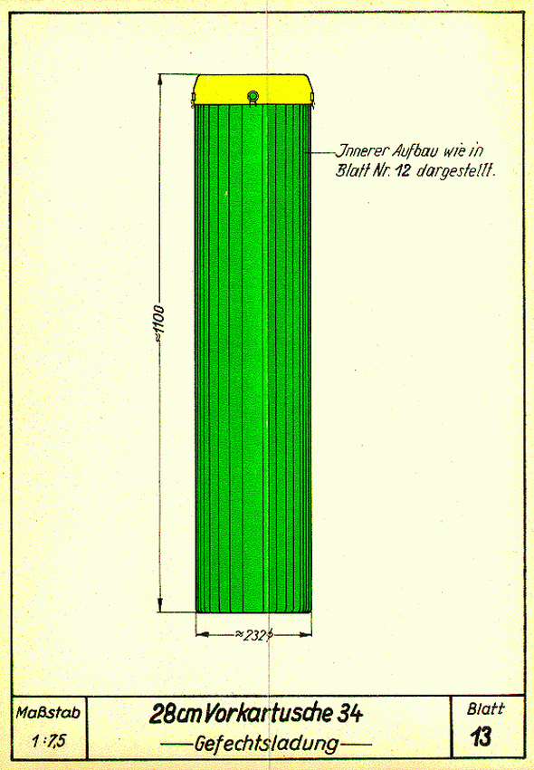 Blatt 12: 28 cm Vorkartusche 28 - Gefechtsladung -Blatt 15: 24 cm Vorkartusche zu etwa 7,5 kg - Gefechtsladung -Inhaltsverzeichnis