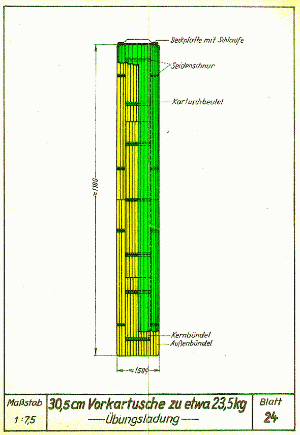 Blatt 20: 20,3 cm Vorkartusche 34 - Gefechtsladung -Blatt 30: Bildliche Darstellung der Vorkartuschen, Fertigung ab Sommer 1941Inhaltsverzeichnis