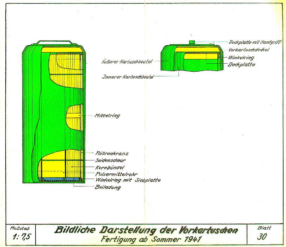 4. Abschnitt - II. Vorkartuschen; 6. a) Vorkartuschen - Gefechtsladung -, b) Vorkartuschen - Übungsladung -