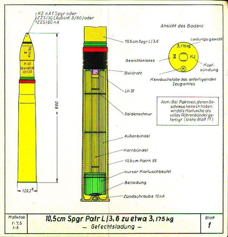 D. Zusammenstellung der Sprenggranatpatronen - Gefechtsladung -Blatt 2: 10,5 cm Spgr Patr L/3,8 Jz zu etwa 3,175 kg - Gefechtsladung -Inhaltsverzeichnis