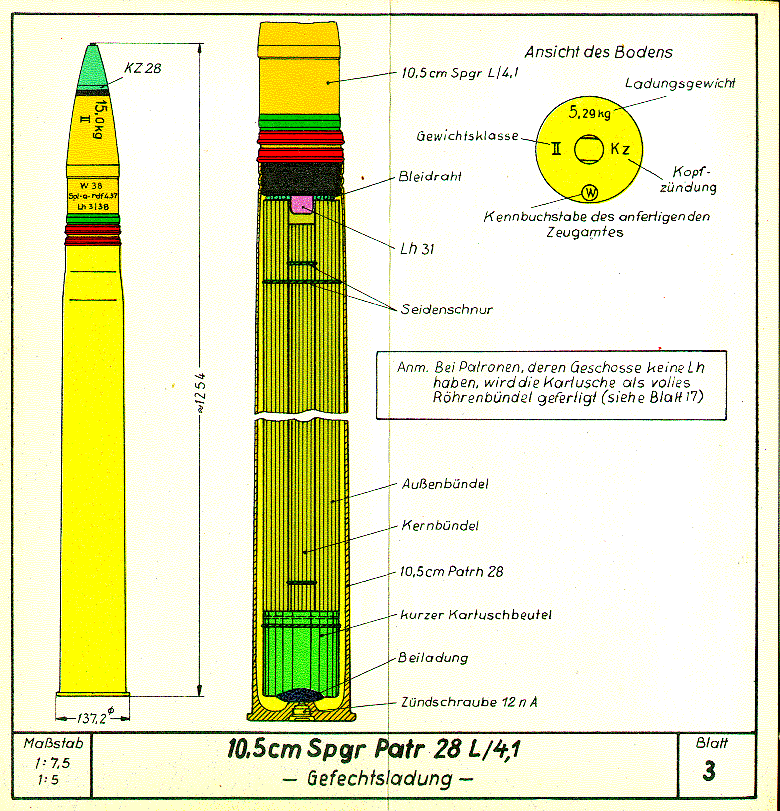 Blatt 2: 10,5 cm Spgr Patr L/3,8 Jz zu etwa 3,175 kg - Gefechtsladung -Blatt 4: 10,5 cm Spgr Patr 32 L/4,4 - Gefechtsladung -Inhaltsverzeichnis
