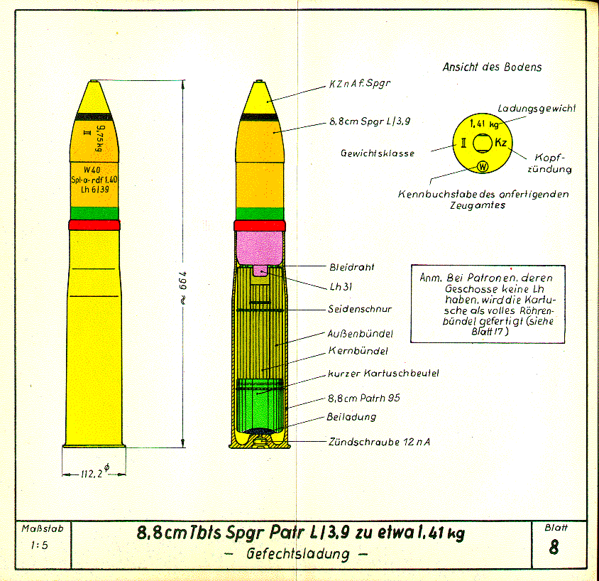 Blatt 5: 10,5 cm Spgr Patr 33 L/4,4 - Gefechtsladung -Blatt 9: 8,8 cm Tbts Spgr Patr L/3,8 Jz zu etwa 1,41 kg - Gefechtsladung -Inhaltsverzeichnis