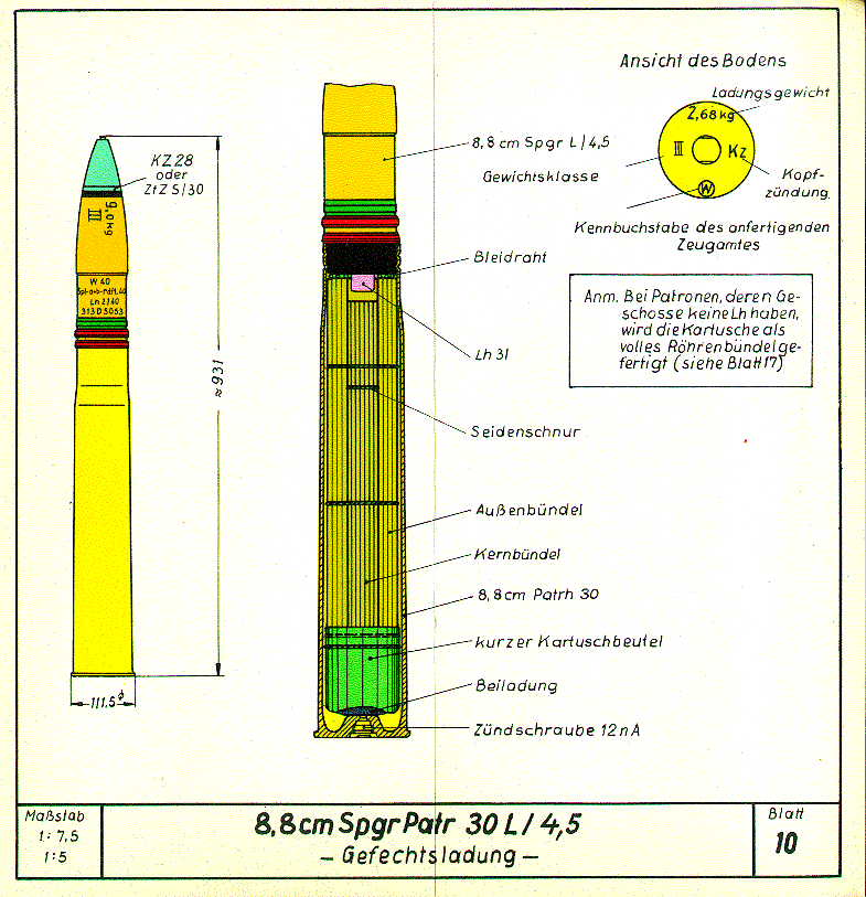Blatt 9: 8,8 cm Tbts Spgr Patr L/3,8 Jz zu etwa 1,41 kg - Gefechtsladung -Blatt 11: 8,8 cm Spgr Patr 25 L/4,4 - große Gefechtsladung -Inhaltsverzeichnis