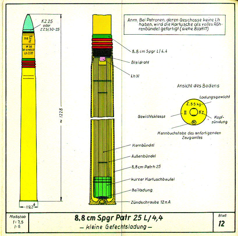 Blatt 11: 8,8 cm Spgr Patr 25 L/4,4 - große Gefechtsladung -Blatt 13: 8,8 cm Spgr Patr 32 L/4,5 - Gefechtsladung -Inhaltsverzeichnis