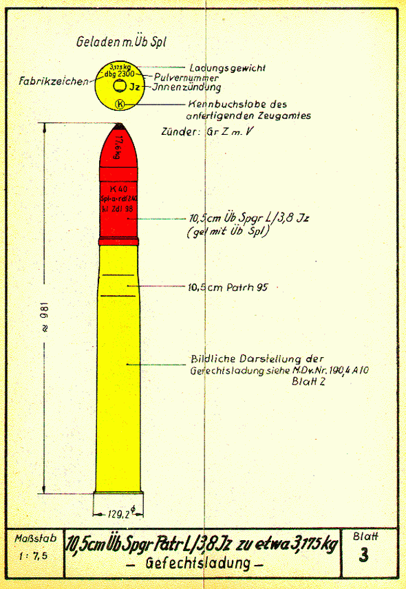 Blatt 2: 10,5 cm Üb Spgr Patr L/3,6 zu etwa 1,57 kg - Übungsladung -Blatt 4: 10,5 cm Üb Spgr Patr L/3,8 Jz zu etwa 1,57 kg - Übungsladung -Inhaltsverzeichnis