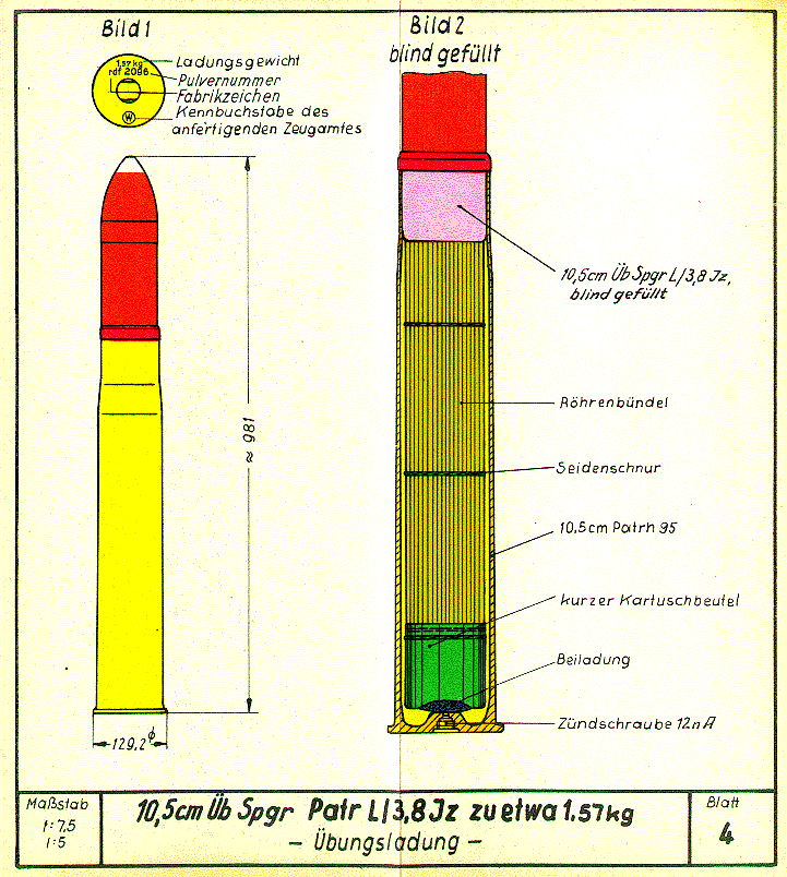 Blatt 3: 10,5 cm Üb Spgr Patr L/3,8 Jz zu etwa 3,175 kg - Gefechtsladung -Blatt 5: 10,5 cm Üb Spgr Patr 28 L/4,1 - Gefechtsladung -Inhaltsverzeichnis