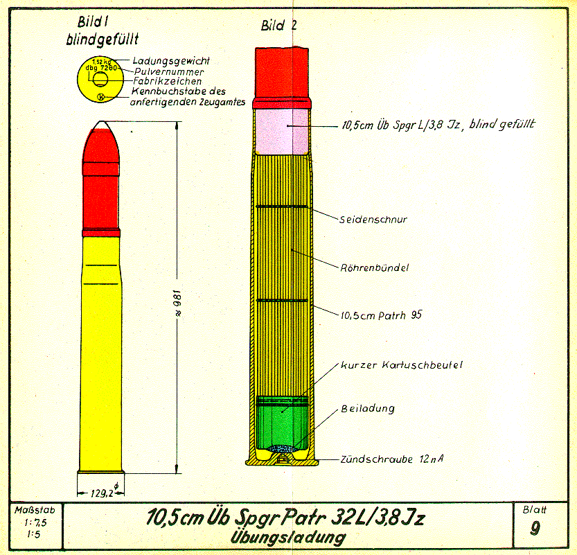Blatt 8: 10,5 cm Üb Spgr Patr 32 L/3,6 - Übungsladung -Blatt 10: 10,5 cm Üb Spgr Patr 33 L/4,4 - Gefechtsladung -Inhaltsverzeichnis