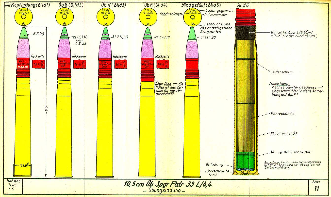 Blatt 10: 10,5 cm Üb Spgr Patr 33 L/4,4 - Gefechtsladung -Blatt 12: 8,8 cm Tbts Üb Spgr Patr L/3,9 zu etwa 1,33 kg - Gefechtsladung -Inhaltsverzeichnis