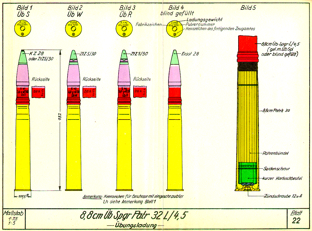 Blatt 21: 8,8 cm Üb Spgr Patr 32 L/4,5 - Gefechtsladung -Blatt 23: 8,8 cm Üb Spgr Patr 35 L/4,5 - Gefechtsladung -Inhaltsverzeichnis