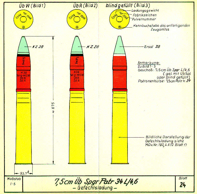 Blatt 23: 8,8 cm Üb Spgr Patr 35 L/4,5 - Gefechtsladung -Blatt 25: 5 cm Üb Spgr Patr L/3,3 zu etwa 0,390 kg - Gefechtsladung -Inhaltsverzeichnis