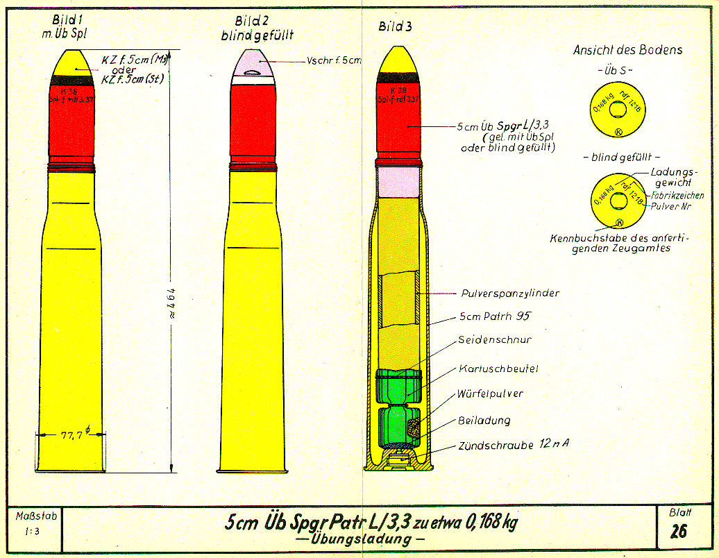 Blatt 25: 5 cm Üb Spgr Patr L/3,3 zu etwa 0,390 kg - Gefechtsladung -Inhaltsverzeichnis