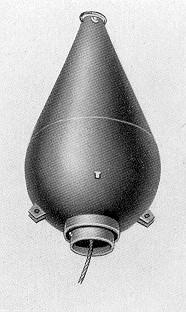 Besondere Merkmale: Unten halbkugelig, oben kegelförmig. In dem unteren Teil der Boje befindet sich ein Messingkörper, der Sprenger mit 800 g Ladung. |