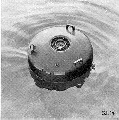 Besondere Merkmale: Gefäß ist ein länglicher Zylinder, der oben und unten eine flach gewölbte Schale abgeschlossen ist. An höchster Stelle Öffnung für die Pendelstoßeinrich-tung wie bei der russischen Mine M 12 mit einem zusätzlichen angegossenen Führungs-rohr am Kopfstück, in dem ein Abreißstrom gleitet. Ferner ist noch ein Uhrwerk, das noch eine Sicherung betätigt, angebaut. 3 Ösen oben am Gefäß dienen zum Transport. 2 seitli-che Rollen dienen als Führung im U-Bootschacht. Die Sprengbüchseneinrichtung sitzt ähnlich wie bei der russischen Mine 08 unter der Pendelstoßeinrichtung. Ankertautrommel und Tiefensteller befindet sich an der unteren Schale.