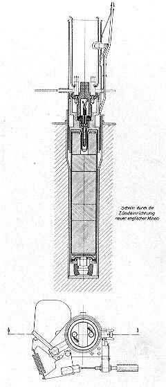 Schnitt durch die Zündeinrichtung neuer englischer Minen |