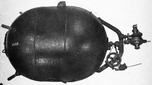 Cover Plate – 12".75 diameter, in the center of the upper hemisphere, secured by 16 bolts. In place of the plate, the mine may be fitted with a circular pan 17" deep. |