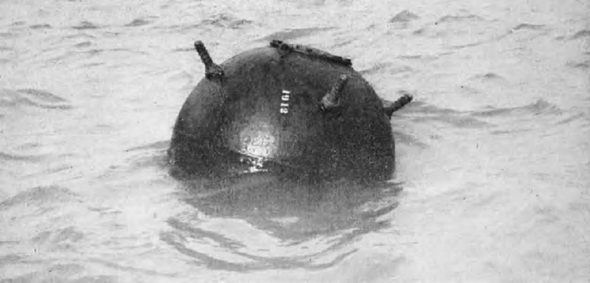 Figure 3 – JA mine, flaoting, with its mooring cable cut. |