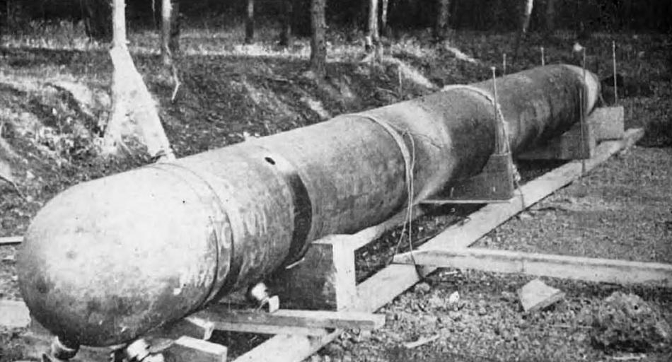 Should this torpedo be found in shallow water or on the beach, it must be considered dangerous. Movement of the torpedo might actuate the exploder, firing the charge. |