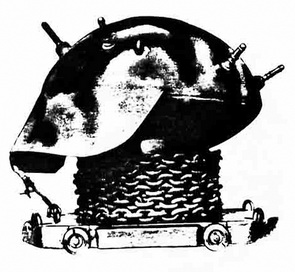 The significant design feature of this mine case was the steel skirt fitted to the un-derside of the case. The purpose of this skirt was to eliminate dipping of the mine. |