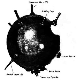 The UMA Mines. The first of this series was developed in 1928. It was a moored, contact, chemical- and switch-horn mine, laid by surface craft, intended for use primari-ly against submarines. In 1936 the prototype of this series became the UMA I when, after slight modifications in the case and mooring, the UMA II was introduced. In 1938 the UMA III appeared. Basically, it was the same as its predecessors, with improvements in the anchor and mooring spindle. |