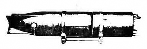 3 ft. 6 in. abaft the nose, fitted with 36 evenly spaced stud holes; covered by two sections of semicircular sheathing, 2 in wide |