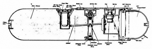 The only self-disarming device is the 80-day-clock, which may be fitted to sterilize the mine at the end of its set period by shorting out the battery. |