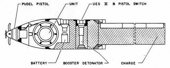 Experiments were conducted with MTA to extend its range to 46,000 yards at a speed of 3.5 knots and to fir a pistol to the mine head. These experiments were not completed and the experimental torpedo was designated "T IId Pudel" while the pistol was designa-ted "Pudel Pistol". The development of an MTB warhead which was to have a larger unit compartment capable of housing later types of influence units was undertaken toward the close of the war, but was never completed. |
