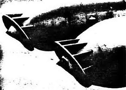 Operation. On impact, the bomb fuze starts ti run, firing the explosive coupling of the retaining latch, releasing the rubber bag. At the same time a squib is fired, allowing the CO2 to inflate the rubber bag. The added buoyancy due to the inflation of the bag cau-ses the mine to float and be carried under the ice to the power plant by the force of the current. The mine is detonated, after the preset time of the 17B fuze has run off. This mine was never used operationally. |