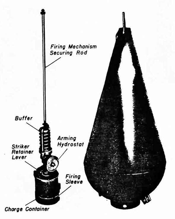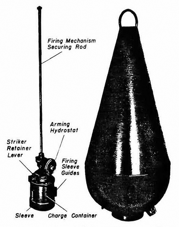 Sprengboje C and Sprengboje D. These are moored, conical floats used as sweep obstructors, laid by surface craft. They are defensive, anti-sweep devices laid in and moored-mine fields. The maximum length of their mooring cables is 360 feet. |