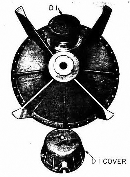 The DM 1 unit is a combination pressure magnetic unit designed by Hasag, Leipzig, for SVK, for use with the LM and TM mines. Work on it began early in 1942, and it was com-pleted and ready for operational use in the summer of the same year. The first unit of this type was recoveres in Normandy in July 1944, Figure 248. |