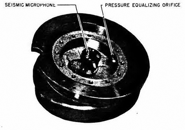 The "Seismik" (Seismograph Microphone) is used in a system which the Germans call the "S-Systeme". The system consists of a special microphone and a simple electrical circuit designed to be used as a low-frequency component for a combination mine unit. It was intended to combine the Seismik with M 4, A 4, and D 2. The last was to have been designated DS 1, but never went beyond the idea stage. The Seismik microphone is designed for frequencies of the 1 to 10 cps. range, but has been applied in development only to a circuit whose optimum frequency was 5 to 8 cps. |