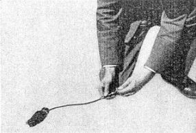 Der Zündschnuranzünder wird von Hand abgezogen (s. Bild 20); rechte Hand hält den Zündschnuranzünder fest; linke zieht ab. |