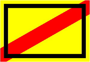 | Umrahmung: schwarz und 3 mm breit, rote Diagonale von links nach rechts oben, s. Muster 159 |