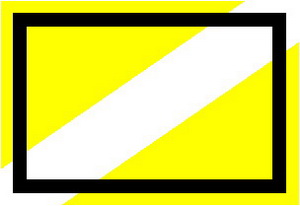 | Umrahmung schwarz, 3 mm breit, gelbe Diagonale von links unten nach rechts oben, Beschriftung s. Muster 63 |