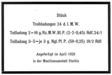 | II. Inhaltszettel für Munition der Werfer |