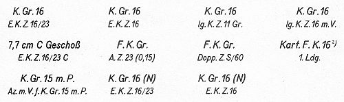 | III. Inhaltszettelmuster für Artilleriemunition |
