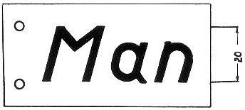 Pappe 37 x 74 x 2 mm, beiderseitig bedruckt. Das Anhängeschild ist zu verwenden, wenn das Packgefäß auch für das Verpacken von scharfer Munition vorgesehen ist. Ein Anhängeschild für jedes mit Manöverkartuschen gefüllte Packgefäß. Maße für das Anbringen der Löcher siehe Muster 103. |
