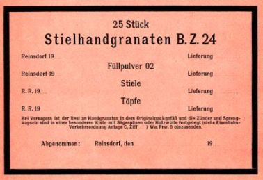 | IV. Inhaltszettelmuster für Nahkampf-, Spreng- und Zündmittel |