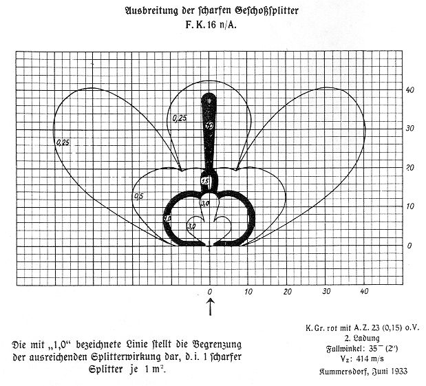 Anlage 2, Ausbreitung der scharfen Geschoßsplitter F.K. 16 n/A.Anlage 4, Ausbreitung der scharfen Geschoßsplitter F.K. 16 n/A.