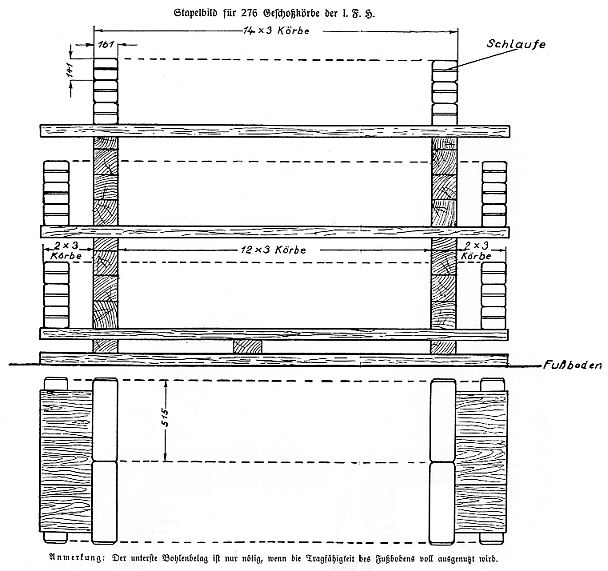Einlagern gekorbter Munition