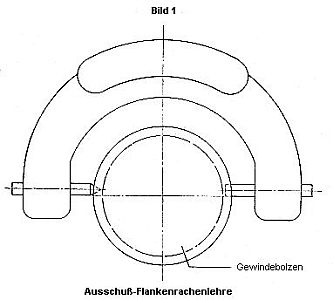 Die Ausschußprüfung erfolgt – soweit eine solche vorgesehen – nicht mit einem Ausschuß-Gewindelehrring, sondern mit einer Ausschuß-Flankenrachenlehre. Diese darf sich nicht über das Werkstück führen lassen.