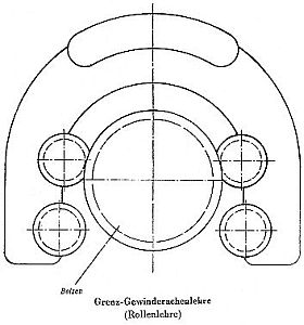 Sind Rollenlehren für die Bolzenprüfung vorgesehen, so soll sich der Bolzen wohl durch das erste Rollenpaar, aber nicht durch das zweite führen lassen (Bild 2).