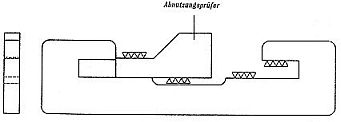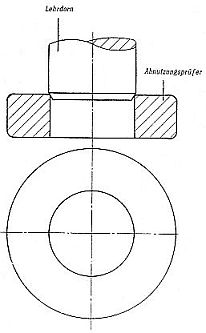 Der Abnutzungsprüfer nach Bild 21 darf sich nicht so weit einführen lassen, daß seine Aufsätze auf der Lehre aufliegen. |