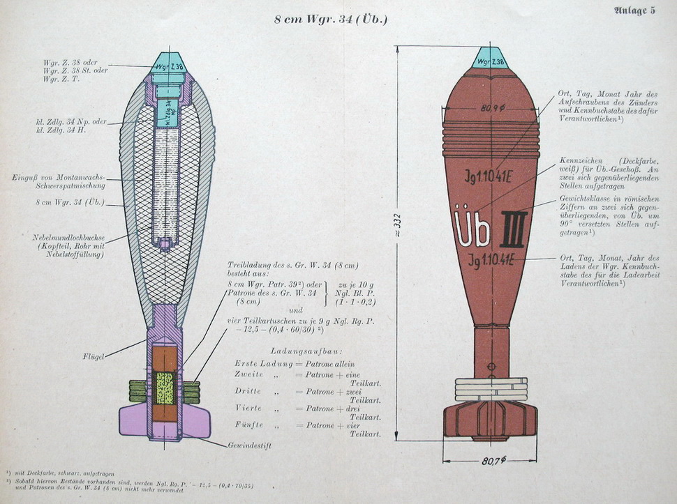 Merkblatt für die Munition des schweren Granatwerfers 34 (8 cm)